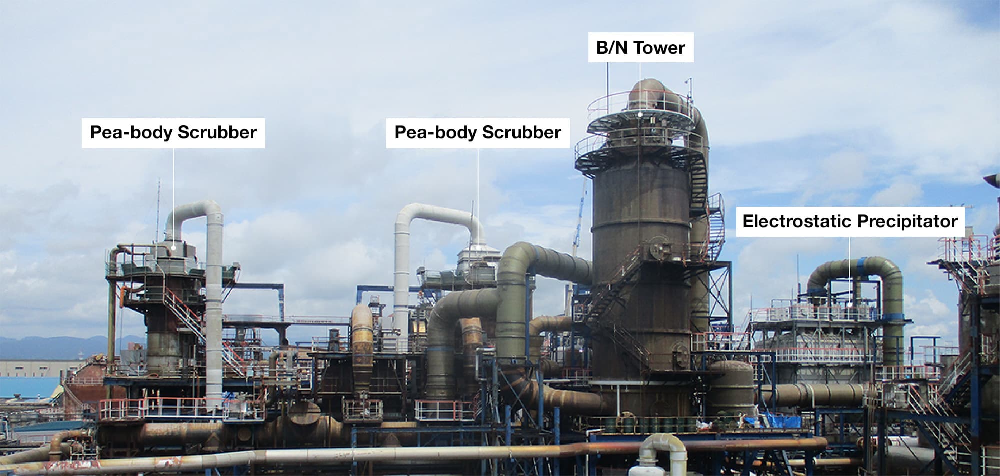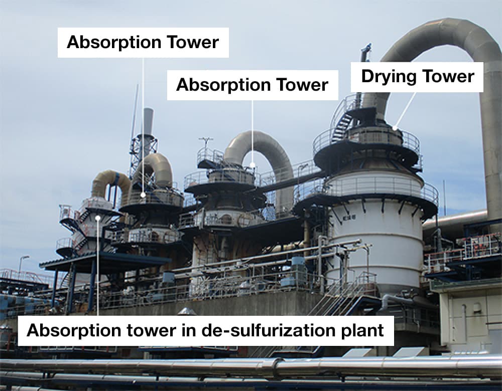 If sulfur oxides derived from concentrate at a smelter are released into the atmosphere, they have a major negative impact on the surrounding environment. We make efforts to protect the environment through the effective use of sulfur oxides as resources, recovering them in the form of sulfuric acid and gypsum.
